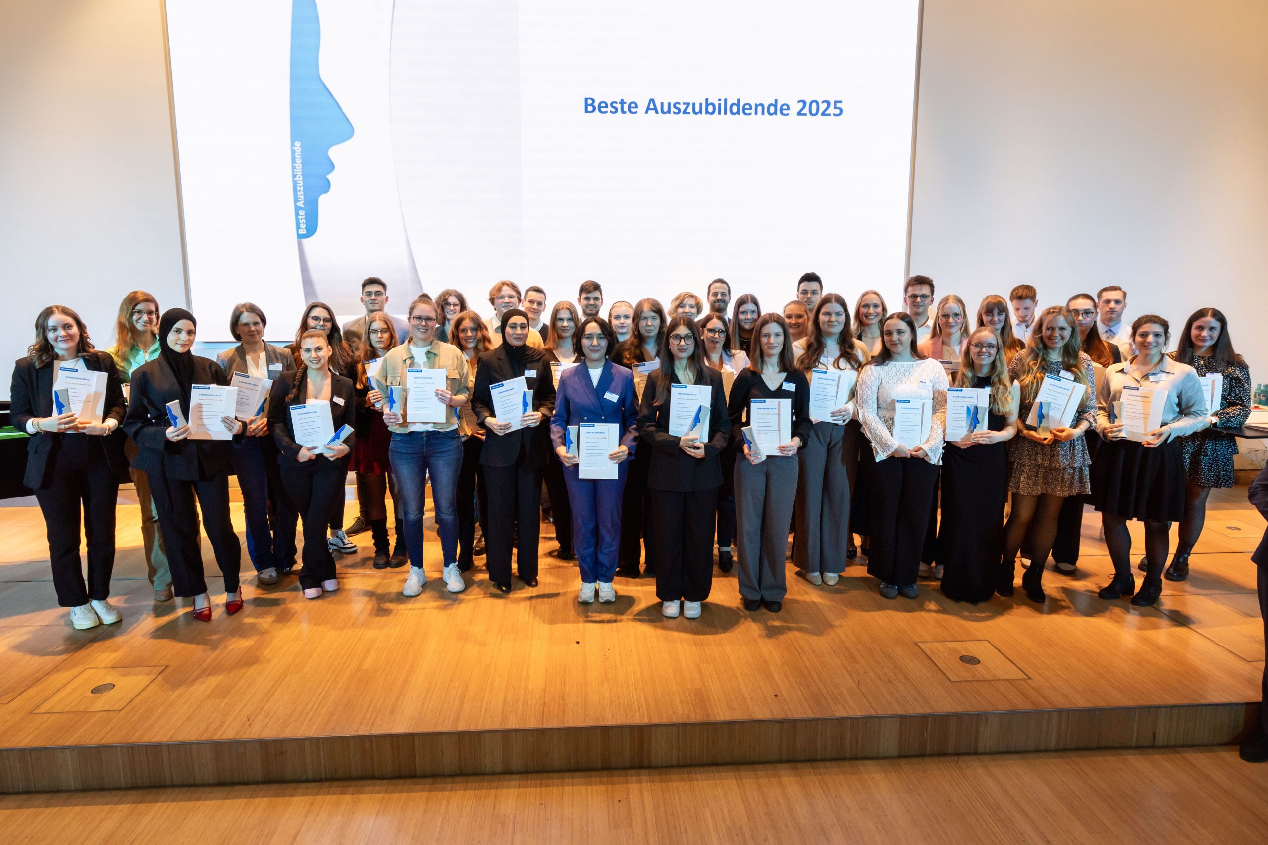 40 junge Frauen und Männer kamen am 11. November 2024 in Begleitung Ihrer Familien und Ausbildenden aus ganz NRW nach Düsseldorf, wo sie im Rahmen eines Festaktes mit Ministerin Josefine Paul die Urkunden und Skulpturen für ihre herausragenden Leistungen entgegennahmen. Sie alle haben ihre Ausbildung bei den Freien Berufen absolviert und in ihrem jeweiligen Ausbildungsberuf die höchste Punktzahl erreicht. Das Spektrum der dualen Ausbildungsberufe bei den Freien Berufen reicht von Fachangestellten in Arzt- und Zahnarzt- und Tierarztpraxen über Pharmazeutisch-Kaufmännische Angestellte in den Apotheken zu Notar- und Steuerfachangestellten sowie Vermessungstechnikern.
